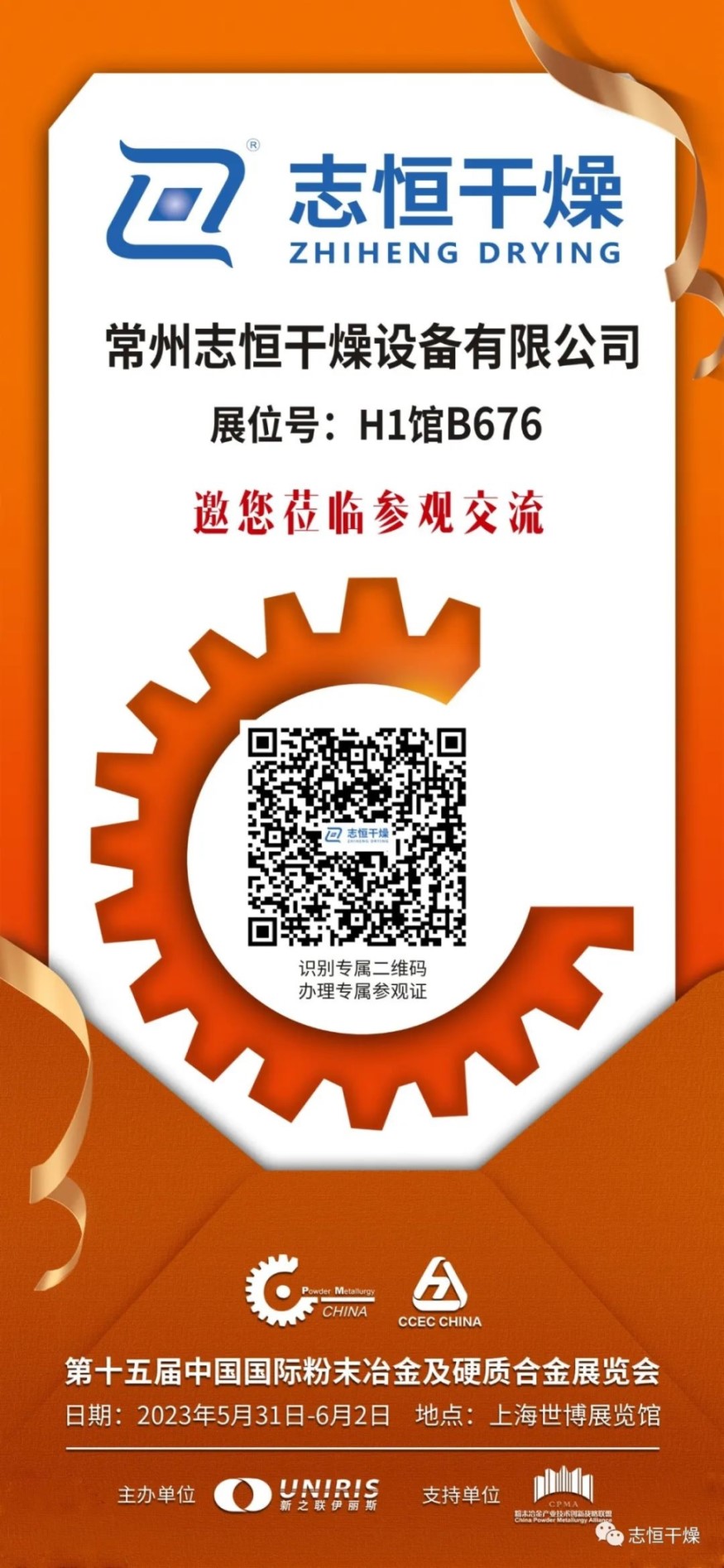 第十五屆中國國際粉末冶金、硬質(zhì)合金與先進陶瓷展覽會將于5月31日至6月2日在上海世博展覽館舉行!我們的位置是H1館B676,邀您蒞臨參觀交流!