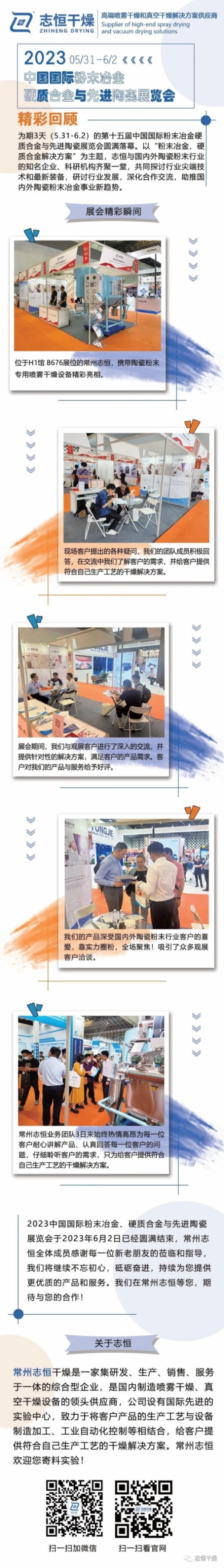 為期3天(5.31-6.2)的第十五屆中國國際粉末冶金硬質(zhì)合金與先進陶瓷展覽會圓滿落幕。以“粉末冶金、硬質(zhì)合金解決方案”為主題,志恒與國內(nèi)外陶瓷粉末行業(yè)的知名企業(yè)、科研機構(gòu)齊聚一堂,共同探討行業(yè)尖端技術(shù)和最新裝備,研討行業(yè)發(fā)展,深化合作交流,助推國內(nèi)外陶瓷粉末冶金事業(yè)新趨勢。